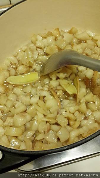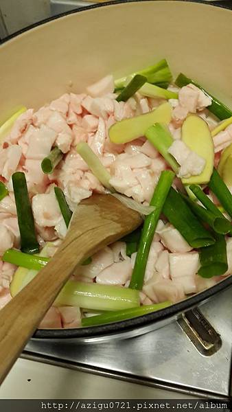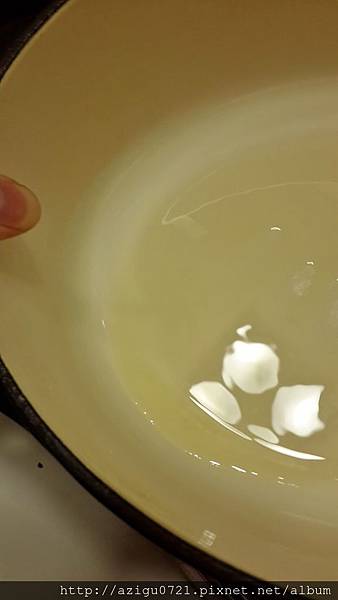 準備ㄧ個有蓋的厚底鍋(我用我的鑄鐵鍋),加點油進去引油出來
