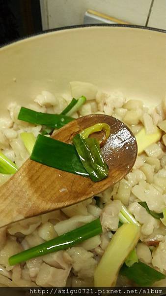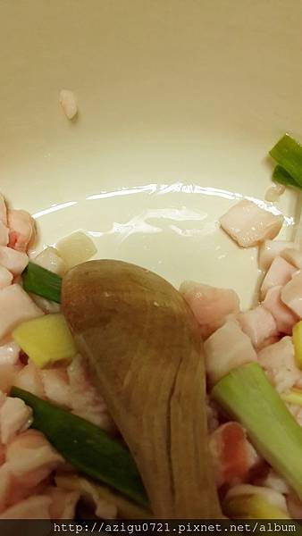 油越來越多的時候,我就把蔥拿起來,因為怕蔥裡的水分太多,我只有取其香味而已。